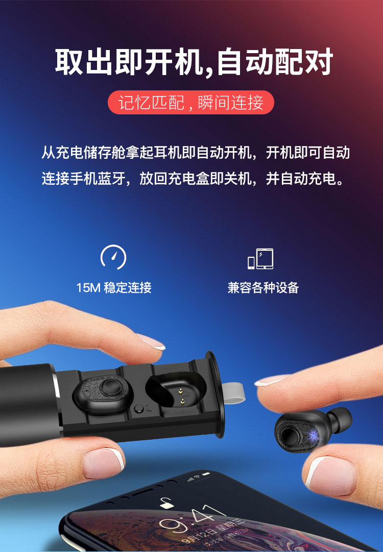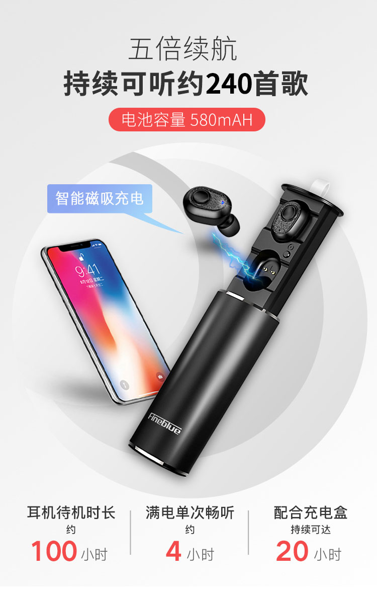 藍牙5.0,磁吸手機充電整理盒建議 拿出即連,自主的搭配 580 mAh 大存儲容量電池組,撐持5.5H音樂音樂,按份共有快速充電盒繼承了能夠達到20分鐘 HIFI平面圖音質,IPX5級地面防水防汗